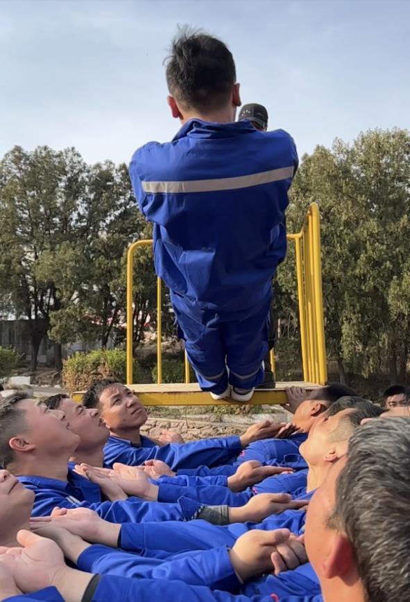 最后一個(gè)拓展項(xiàng)目“畢業(yè)墻”,墻高4.2米,要求在沒(méi)有任何工具的情況下翻過(guò)這面墻,剛開(kāi)始每個(gè)人心里都微微一驚。最后,在教官的帶領(lǐng)下,員工們克服恐懼心理,團(tuán)結(jié)協(xié)作,眾志成城,全部翻過(guò)了畢業(yè)墻,他們揮舞著旗幟,高聲吶喊“我們勝利了”!兗州中材公司就是這樣一個(gè)充滿激情的團(tuán)隊(duì),員工們翻過(guò)了拓展訓(xùn)練營(yíng)的畢業(yè)墻,相信在工作中也一定能夠翻過(guò)他們心中的“畢業(yè)墻”。