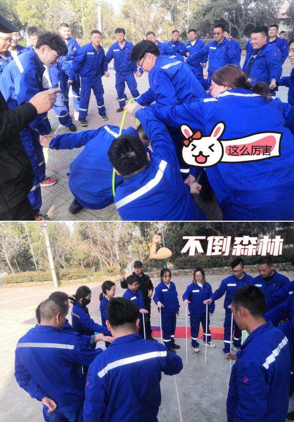 隨后又開(kāi)展了摸石過(guò)河、團(tuán)隊(duì)七巧板、信任背摔等趣味游戲。