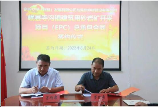 | 8月24日上午,定西交投(岷縣)發(fā)展有限公司與兗州中材建設有限公司簽署岷縣寺溝鎮(zhèn)建筑用砂巖礦開采項目(EPC)總承包合作協(xié)議,在岷縣投資建設綠色、環(huán)保礦石開采加工生產(chǎn)線。
