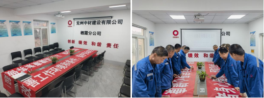 分公司員工于現場辦公室進行啟動儀式簽字活動。大家廣泛發動,擴大宣傳范圍,大力宣傳活動主題和重點活動內容,宣傳職業病防治和職業健康知識及有效舉措