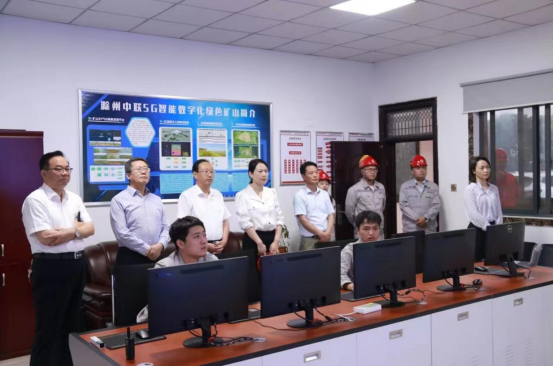 隋同波一行首先參觀了礦山5G智能控制室,并認真聽取了關于5G智能數字化綠色礦山建設情況匯報。
