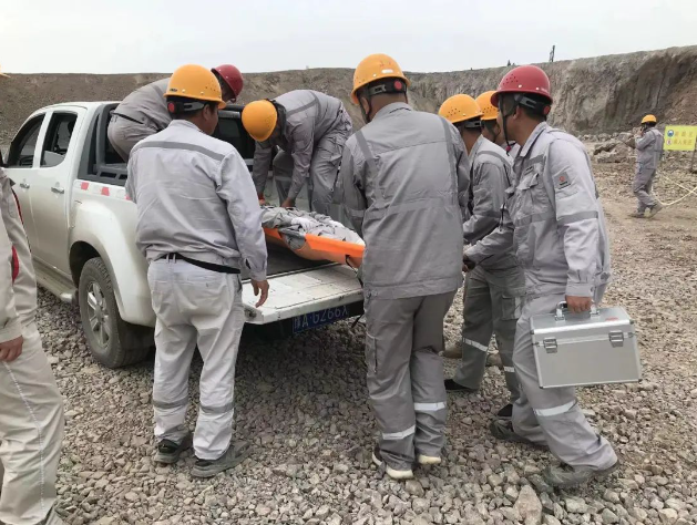 上午10時整,演練正式拉開序幕。假設情況是該露天礦山某區域發生了邊坡坍塌,造成一名作業人員腿部受傷被困。接到報告后,項目副經理楊宇立即啟動應急預案,迅速組織了由醫療救護組、應急搶險組、警戒保衛組、物資保障組等部門人員組成的應急救援隊伍,攜帶救援裝備,迅速趕赴事故現場。同時,通訊保障組也迅速建立起臨時通訊網絡,確保現場信息暢通無阻。