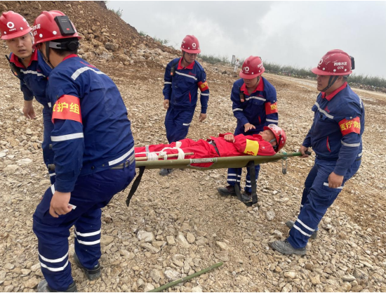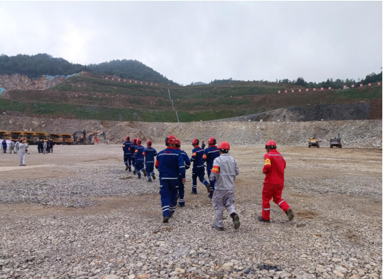 演練現(xiàn)場(chǎng)模擬遇強(qiáng)降雨后邊坡發(fā)生垮塌事故,在接到險(xiǎn)情報(bào)告后,應(yīng)急指揮部立即啟動(dòng)應(yīng)急預(yù)案,組織各救援小組趕赴現(xiàn)場(chǎng)