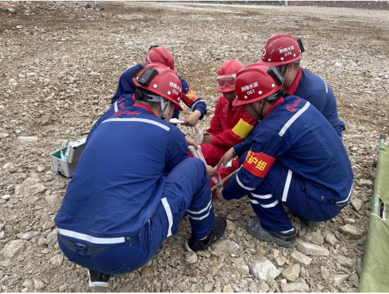 受傷人員救出后,醫(yī)療救護(hù)組進(jìn)入現(xiàn)場(chǎng),通過傷情檢查,發(fā)現(xiàn)傷員腿部受傷,立即對(duì)傷員進(jìn)行救治