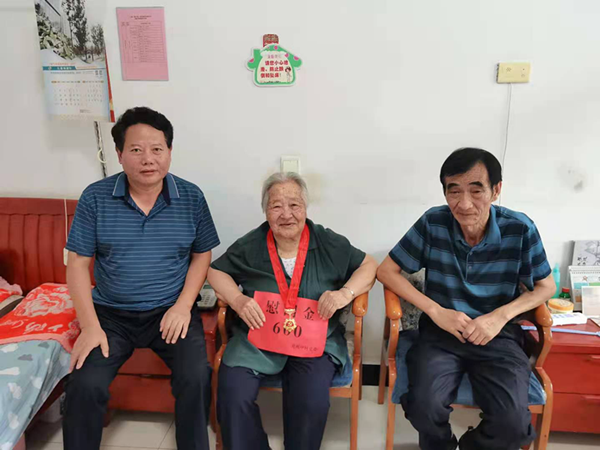 頒發紀念章,致敬老黨員