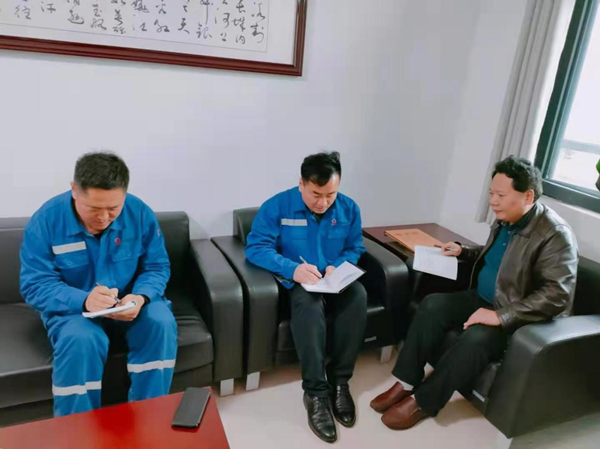 2021年4月26日,公司黨委書(shū)記、總經(jīng)理柯升,副書(shū)記何芳訓(xùn),黨群部部長(zhǎng)李增光,來(lái)到蘭陵分公司上黨史教育課和調(diào)研黨員發(fā)展工作。
