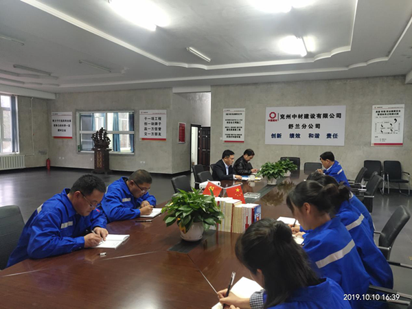 兗州中材總經理柯升在舒蘭項目部作專題黨課報告